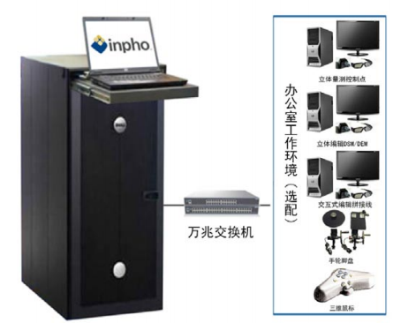 Inpho影像加速处理系统由软件子系统与硬件子系统两部分组成。影像加速处理软件子系统功能模块包括数据准备、自动空三加密、DSM/DTM提取与编辑、正射影像DOM生成与镶嵌成图组成。影像加速处理硬件子系统采用高性能计算(High Perfermance Computing)集群和SAN(Storage Area Network-存储区域网络)架构。高性能计算集群致力于提供单个计算机所不能提供的强大的计算能力,并担保负载均衡技术,保证服务器稳定运转。Inpho影像加速处理系统利用计算机网格技术和并行计算技术实现数字摄影测量的快速处理,打破传统基于数字摄影测量工作站串行处理的作业流程,具有产品生产流程并行化、高效率等特点。
