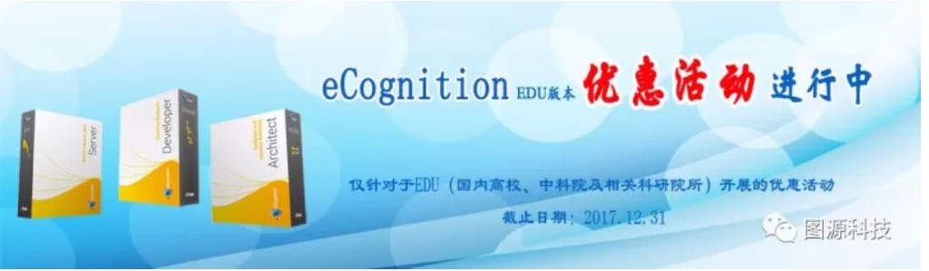 北京bsports必一体育科技有限公司现针对EDU(国内高校、中科院及相关科研院所)新购eCognition(EDU)软件包的客户推出第二套半价优惠活动,活动截止日期为:2017年12月31日,同时北京bsports必一体育科技有限公司作为Trimble解决方案提供商为更好的服务广大eCognition用户,现推出图像解译智典(MapCore Wiki),图像解译智典提供面向对象解译算法、规则集、行业解决方案和学习资料(文档、视频、程序)。详情请致电北京bsports必一体育科技有限公司,电话:010-62908360,网址:www.mapcore.com.cn