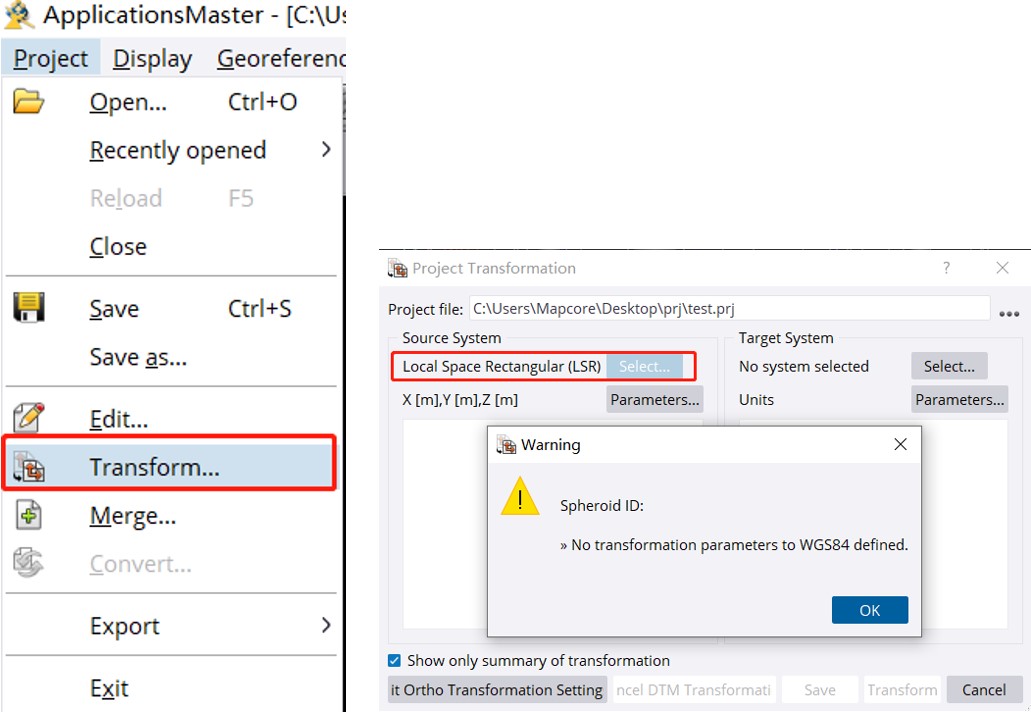 转换的时候,工程坐标系不能是Local坐标系。如果是Local坐标系,可以到项目编辑器里进行修改成原本的84坐标系。