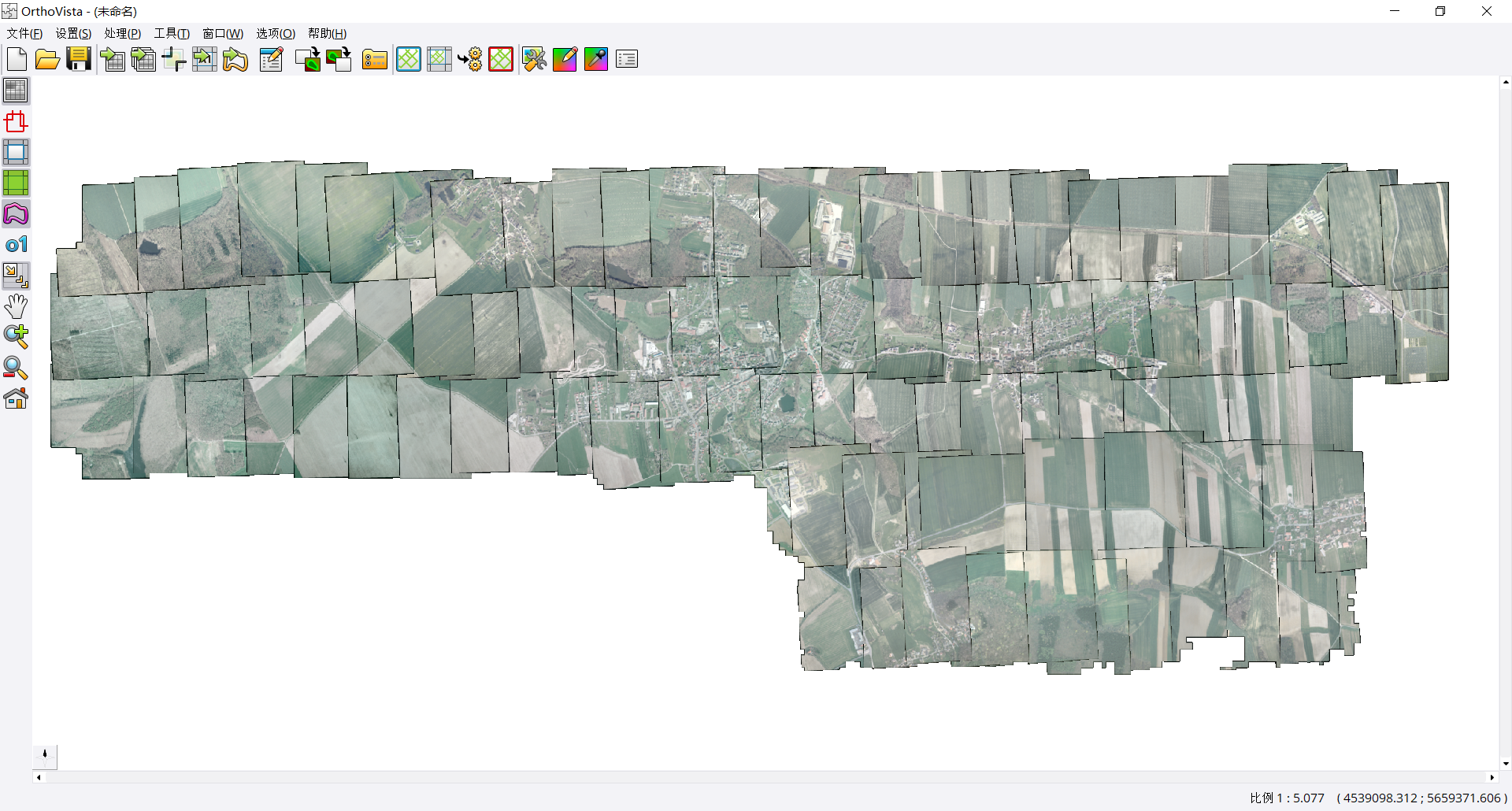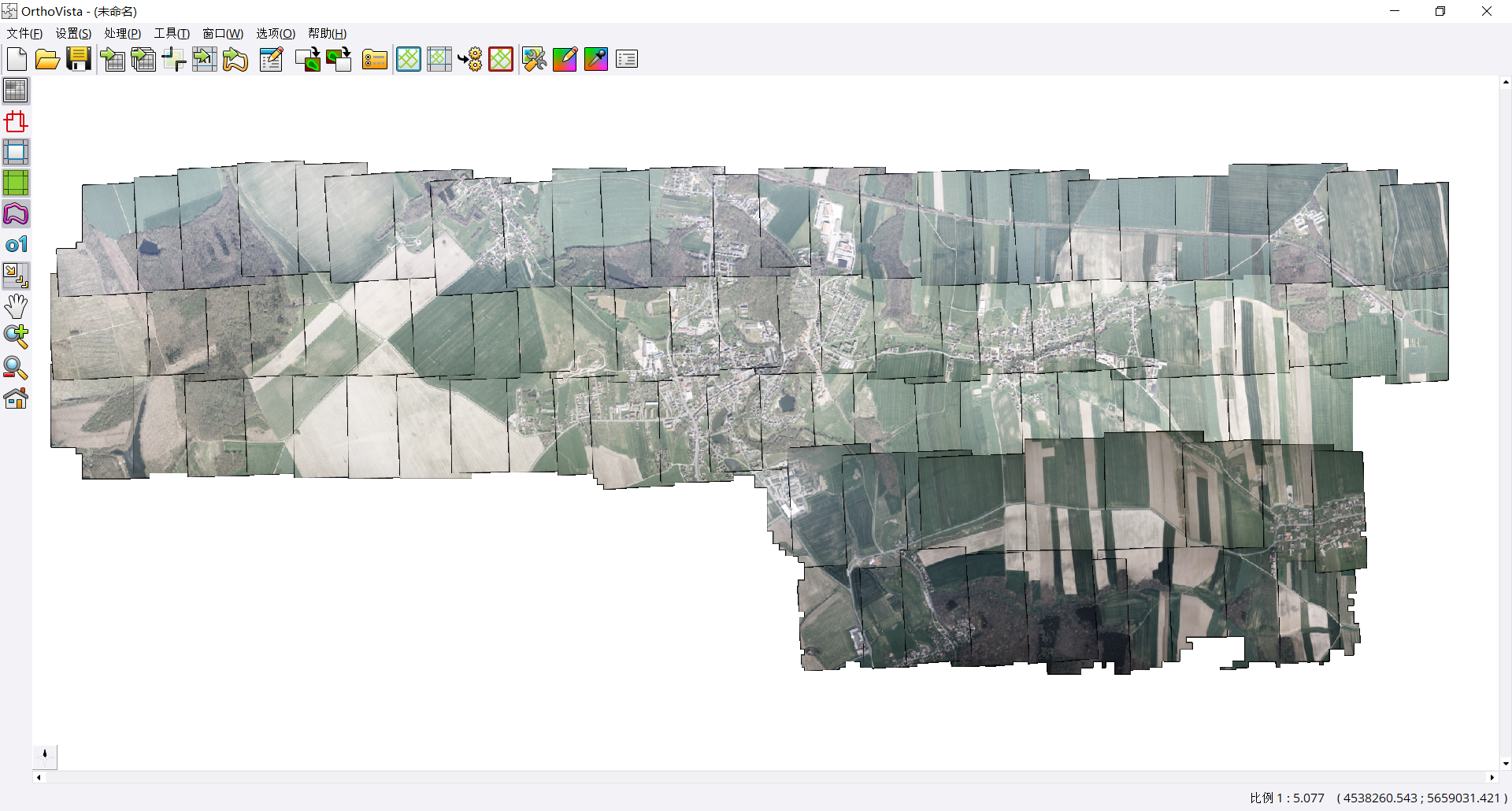 无人机在获取影像的时候,由于外部和内部的原因,比如拍摄时间的不同,正午和傍晚拍摄导致影像的光照不均匀,其具体表现是单张影像内部的色彩不均匀和相邻影像的同名影像色彩不一致。同名影像的色彩差异最终影响影像的镶嵌。为此,在进行无人机影像镶嵌前需要影像色彩均衡(也称作为匀光匀色)来消除影像间的差异。